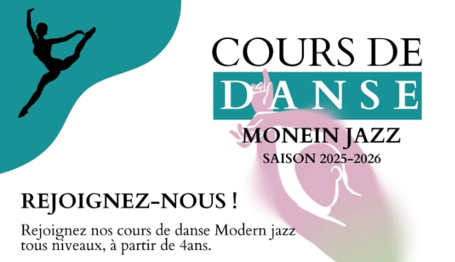Cours de danse Modern jazz, tous niveaux à partir de 4 ans dispensés par une professeure diplômée d’Etat.
