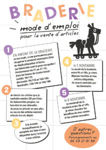 Vous souhaitez vendre des articles ? La distribution des listes d’autoenregistrement se fera sur permanences, au Centre Social, à partir du lundi 21 octobre et jusqu’au 30 octobre :