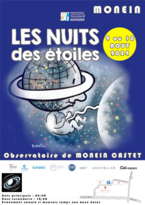 La section astronomie du Foyer Rural de Monein organise la  »nuit des Etoiles » (soirée d’astronomie ouverte au public), le vendredi 9 aout à partir de 21h (reportée au samedi 10 aout si temps couvert le 9 aout). En cas de mauvais temps le 10/08, la soirée sera annulée.
