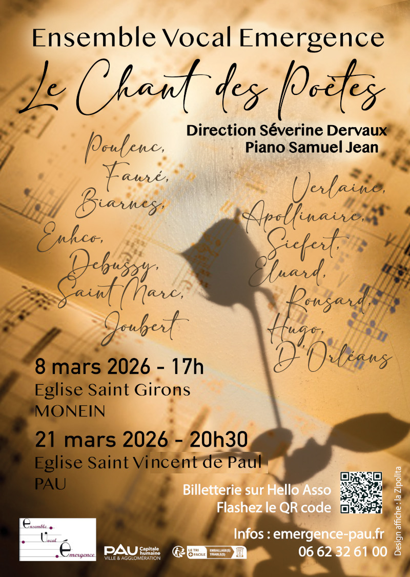 Organisé par l'association Emergence Pau Sous la direction de Séverine Dervaux « LE CHANT DES POÈTES » Figures majeures sans conteste de la poésie française : Charles d’Orléans (XVe), Pierre de Ronsard (XVIe) et […]