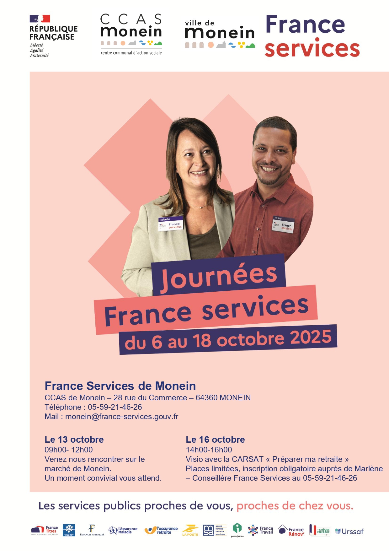 Dans le cadre des Journées France Services, qui se dérouleront du 6 au 18 octobre 2025, l’équipe de France Services de Monein vous propose deux temps forts pour venir à […]