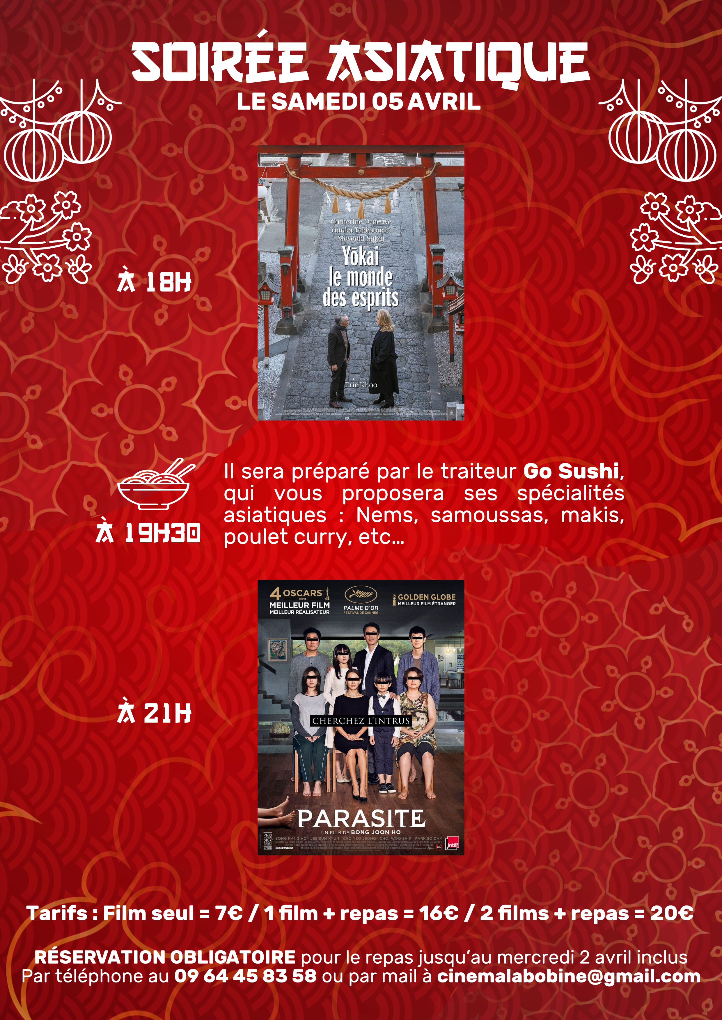 Pensez à réserver jusqu'à ce mercredi 2 avril inclus pour le repas. Vous avez le choix : ° 1 film au choix + repas pour 16€ ° 2 films + […]